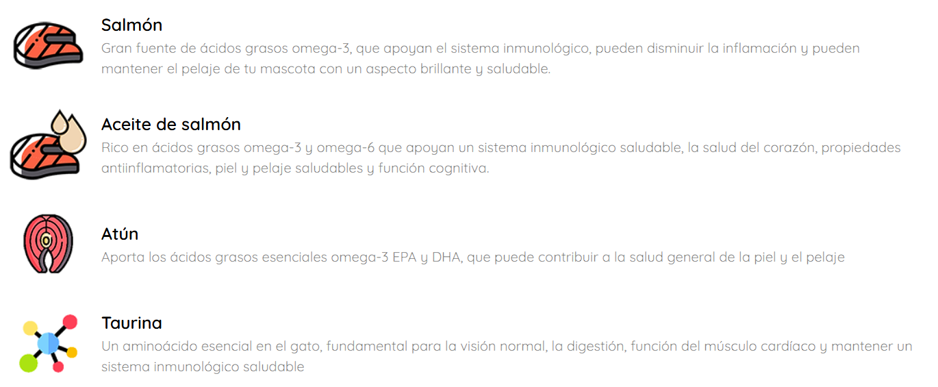 - Elaborado con aceite de salmón, atún y taurina.